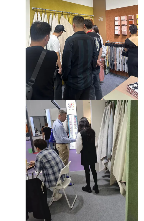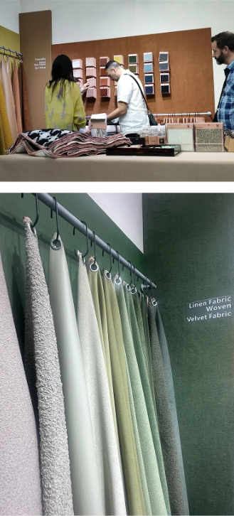 Haining Trouvaille Home Co., Ltd. toi messuille uusia kangastuotteita, kuten pellavaa, samettia, kudottuja kankaita, ekologista nahkaa ja muita uusia kankaita. Nämä kankaat esittelevät ajankohtaisia muotisuunnittelukonsepteja ja edistyksellisimpiä tekniikoita ja materiaaleja.