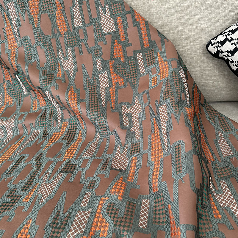 Äskettäin lanseerattu värikäs sarja perustuu teknologiseen kankaaseen, nahkatekstuurikangaspohjaan yhdistettynä geometriseen kuviointiin, raskaaseen kirjontaan, jokaiseen yksityiskohtaan levitetyllä neulalla ja langalla, värikkäillä väriyhdistelmillä tuotteeseen murtaakseen tuotteen tylsän yksitoikkoisuuden. kodin tilaa, lisää eloisaa elinvoimaa!Sopii pehmeisiin kalusteisiin, tyynyihin, tuoleihin, koristeisiin.